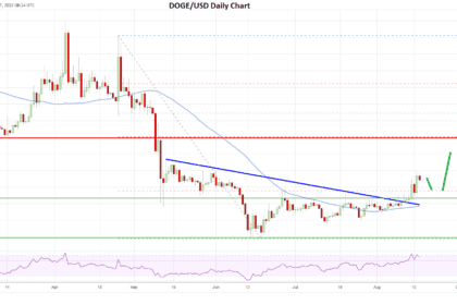 Dogecoin is eyeing an upside break above $0.1155. DOGE price must stay…