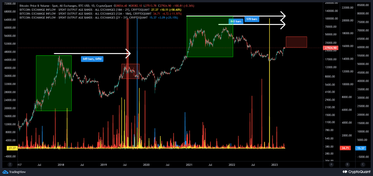 According to the crypto analytical platform CryptoQuant, exchange deposits of long-term Bitcoin holders (18 months to three years) can help forecast its future price fluctuations. For example, recent research claimed that the small bull run of 2019 ended when holders who bought BTC at the 2017-2018 highs deposited their coins onto exchanges.