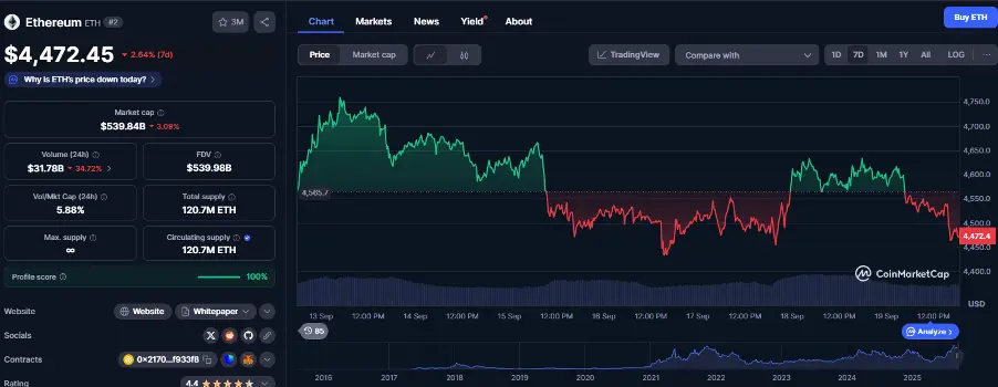 Ethereum is the engine behind so much of the crypto world, and its price is sending some strong signals right now. At the time of writing, the price of ETH is about $4,466.75, and it has been consolidating under resistance around $4,600. If ETH can clear that level cleanly, we could see the next move toward roughly $5,400. Stablecoin liquidity on the network has reached a record $171 billion, which suggests that DeFi liquidity is firmly in place to support this momentum. Whether ETH breaks this week or next, the setup is building, and altcoins are positioning themselves to benefit.