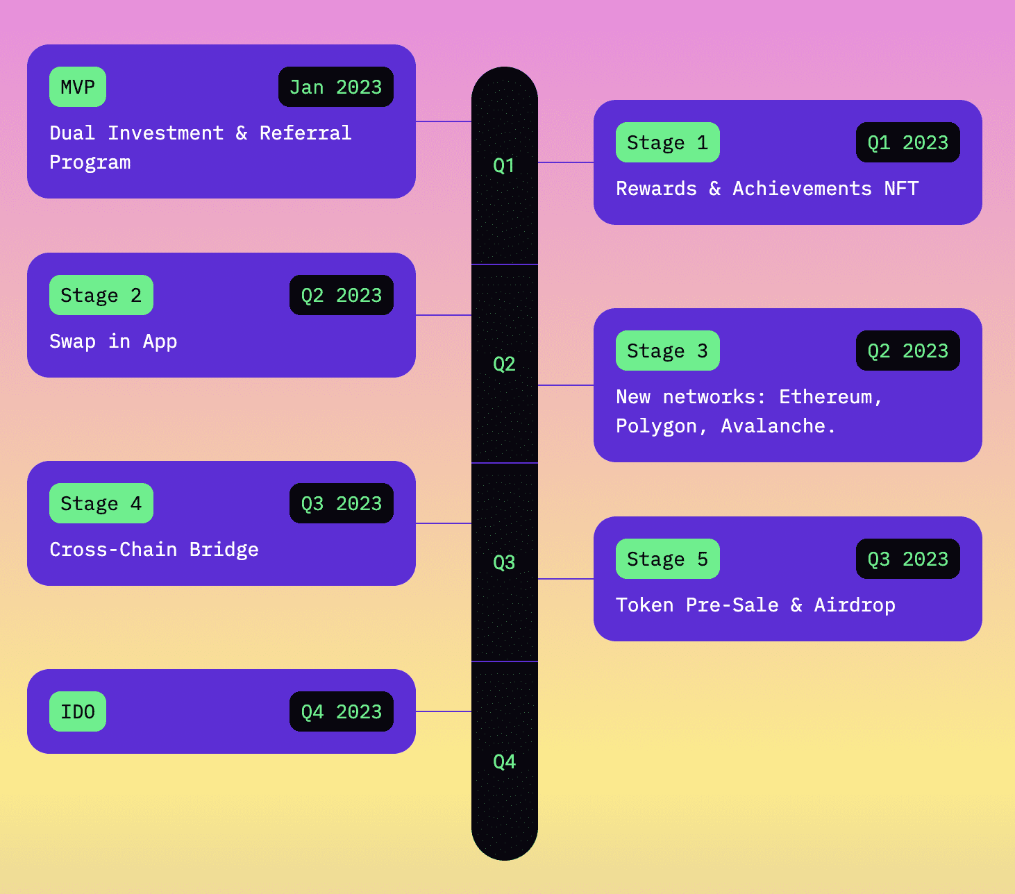 During the first months of 2023, our team planned to enable personal accounts, and the platform’s most active users will be rewarded with NFTs. Later, ReHold are going to deploy on other blockchains (including Ethereum, Polygon, and Avalanche), create a cross-chain bridge to help users maximize their yields, launch its native token, and enter an IDO.