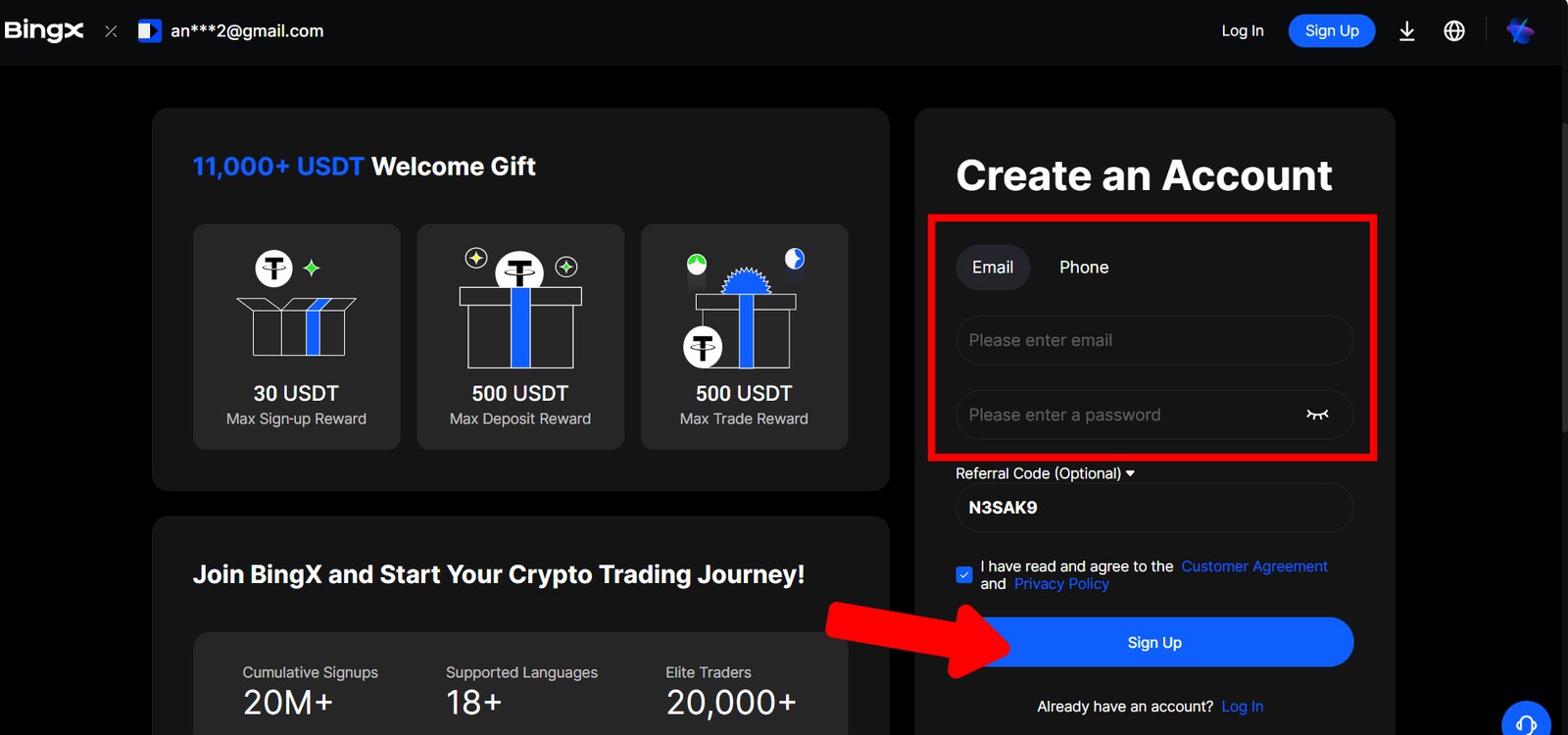 1. Create an Account: Visit the BingX registration page and sign up with your email and password.