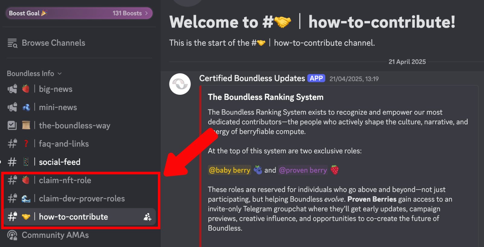 Explore the “how-to-contribute” channel to claim additional roles and boost your Boundless Airdrop involvement.