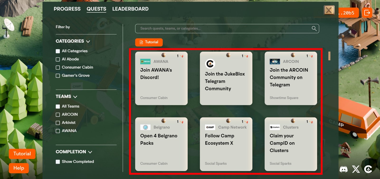Access the “Quests” tab and complete the newly available tasks