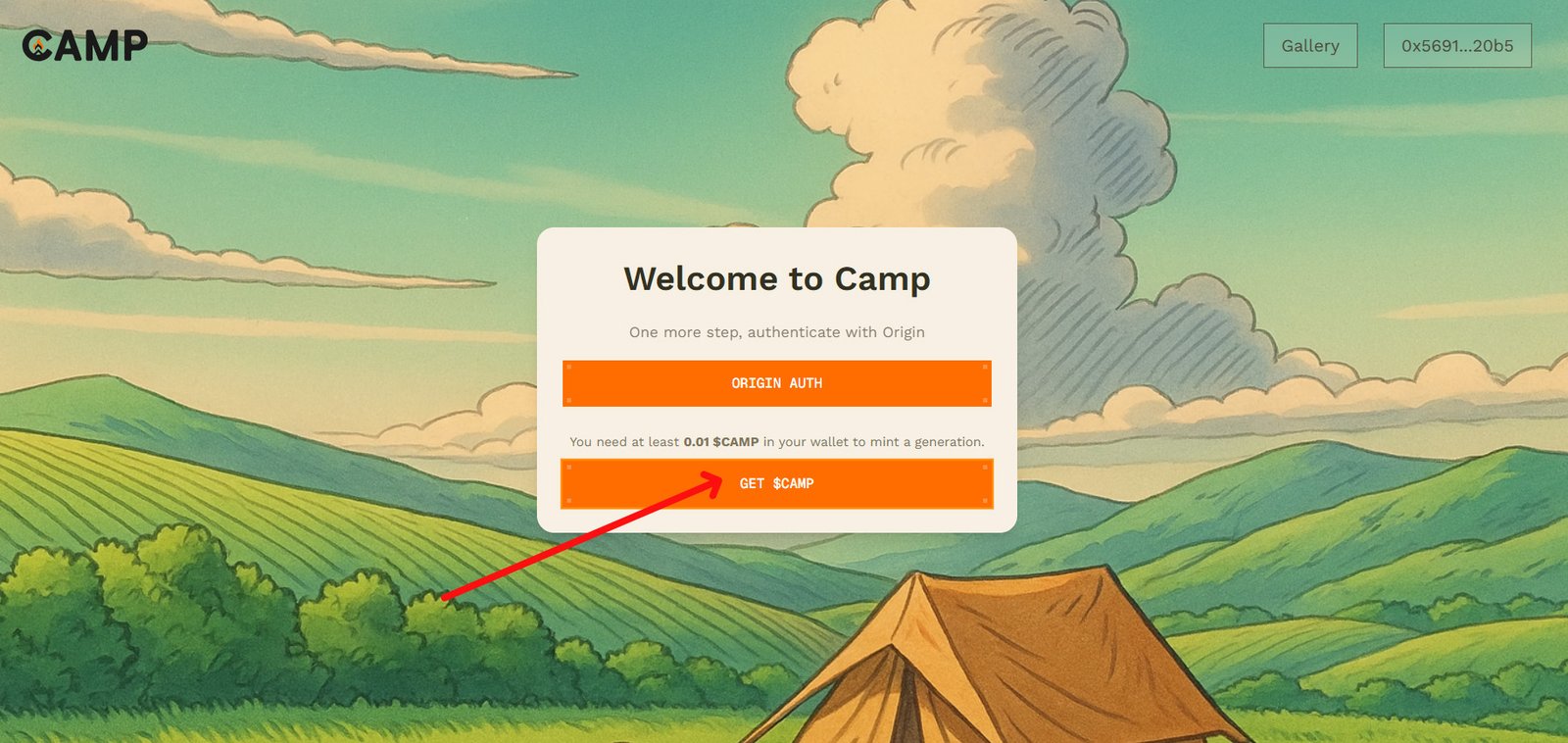 Log in to the Camp Network platform with the same wallet as before