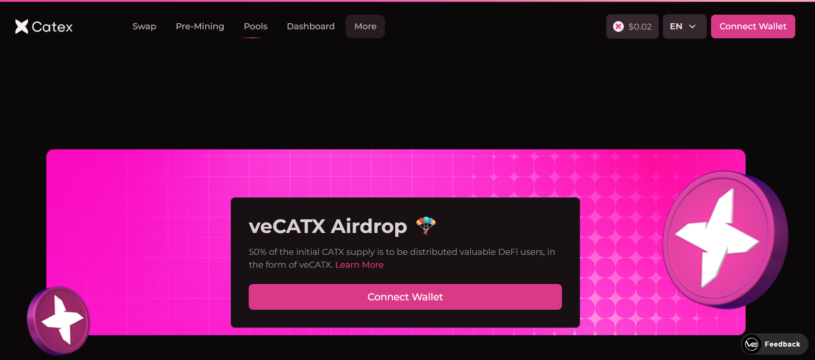 Eligible participants can claim their veCATX tokens through the platform’s airdrop page. These tokens grant governance rights and a share of platform-generated fees.