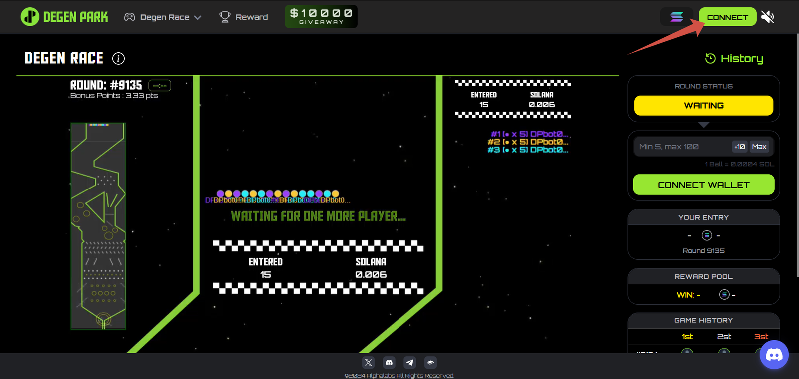 1. Visit the official Degen Park airdrop page and connect your Solana wallet.