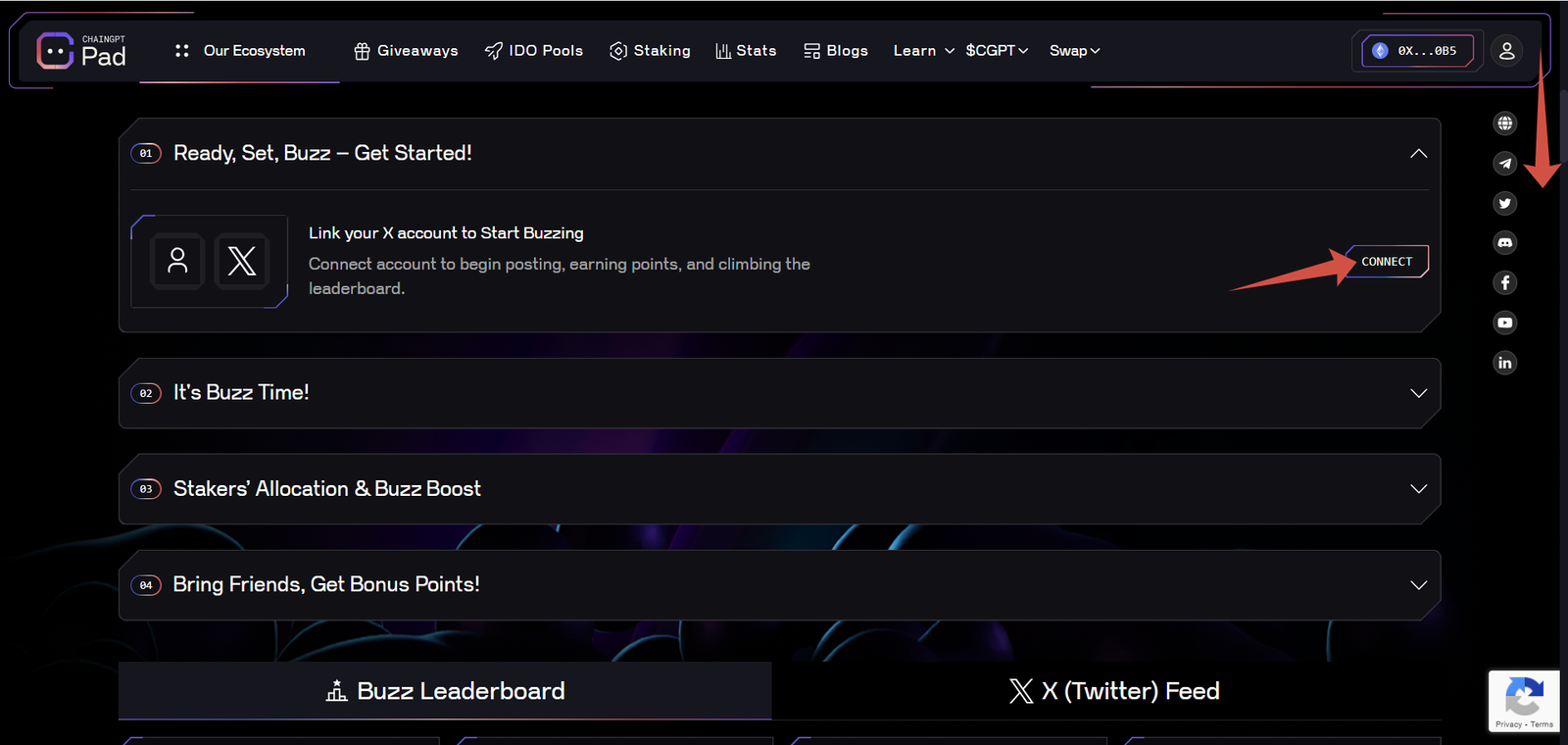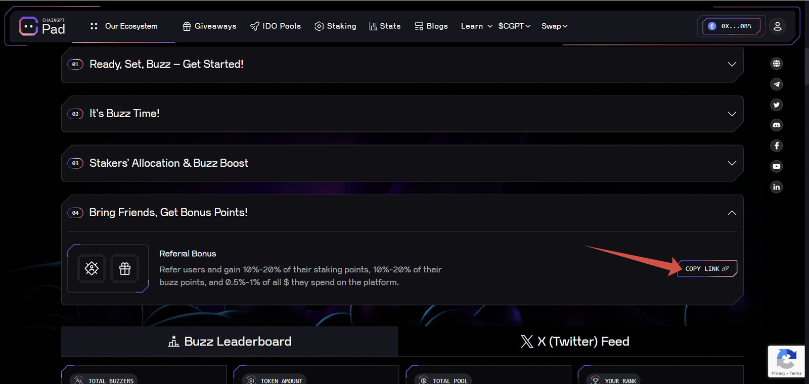 4. Stake $CGPT Tokens: Stakers get automatic allocation and boosted points per post. Higher stakes mean bigger rewards.
