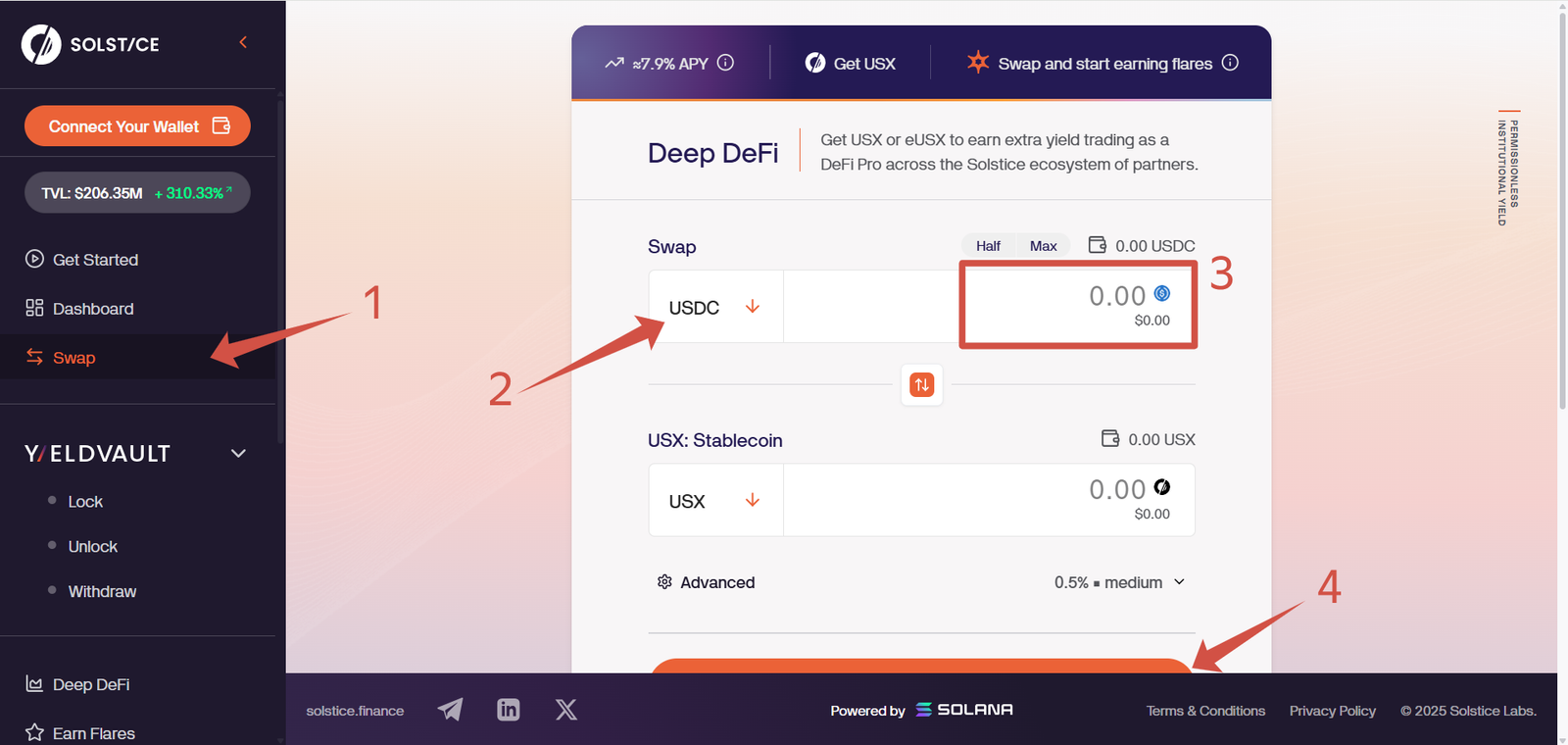 5. Swap at least 100 USDC or SOL to USX to earn 800 Flares + 3× on the first trade.
