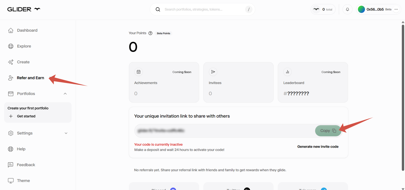 Users earn points by depositing funds, building portfolios, and actively using Glider during the beta phase.