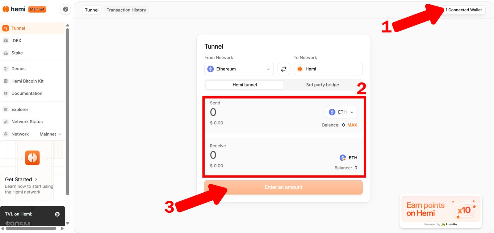 1. Bridge ETH into Hemi mainnet