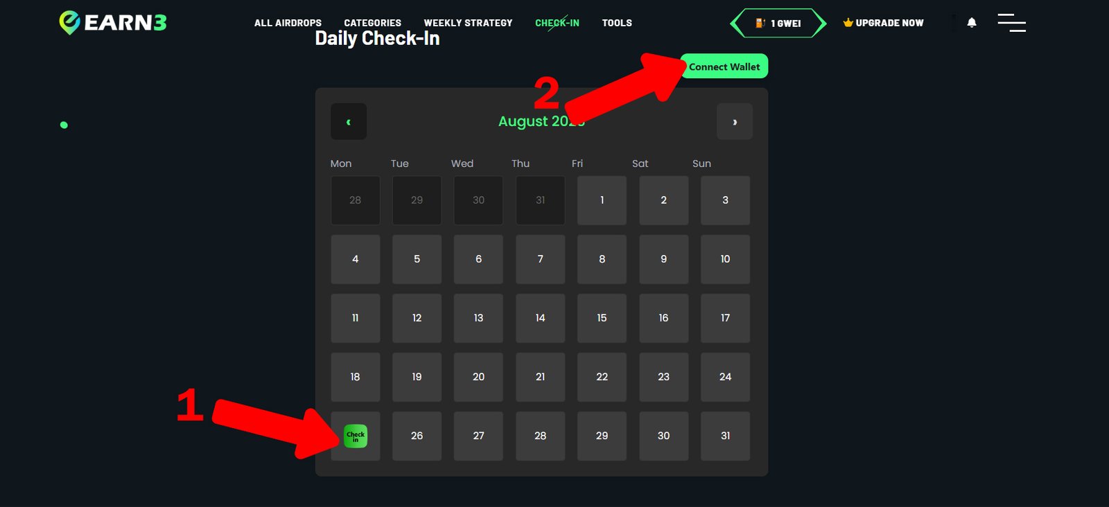 6. Complete daily check-ins on https://earn3.app/checkin/hemi