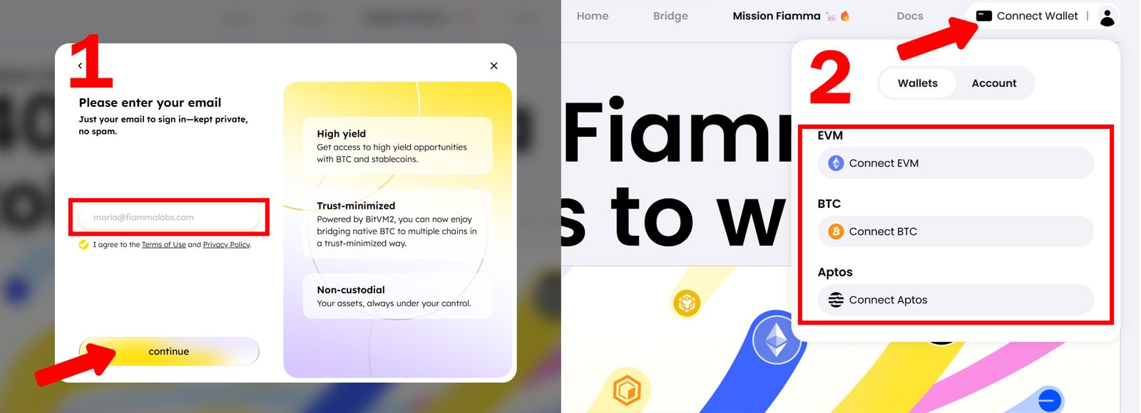 Connect your EVM, Aptos, and Bitcoin wallets to access the campaign platform.