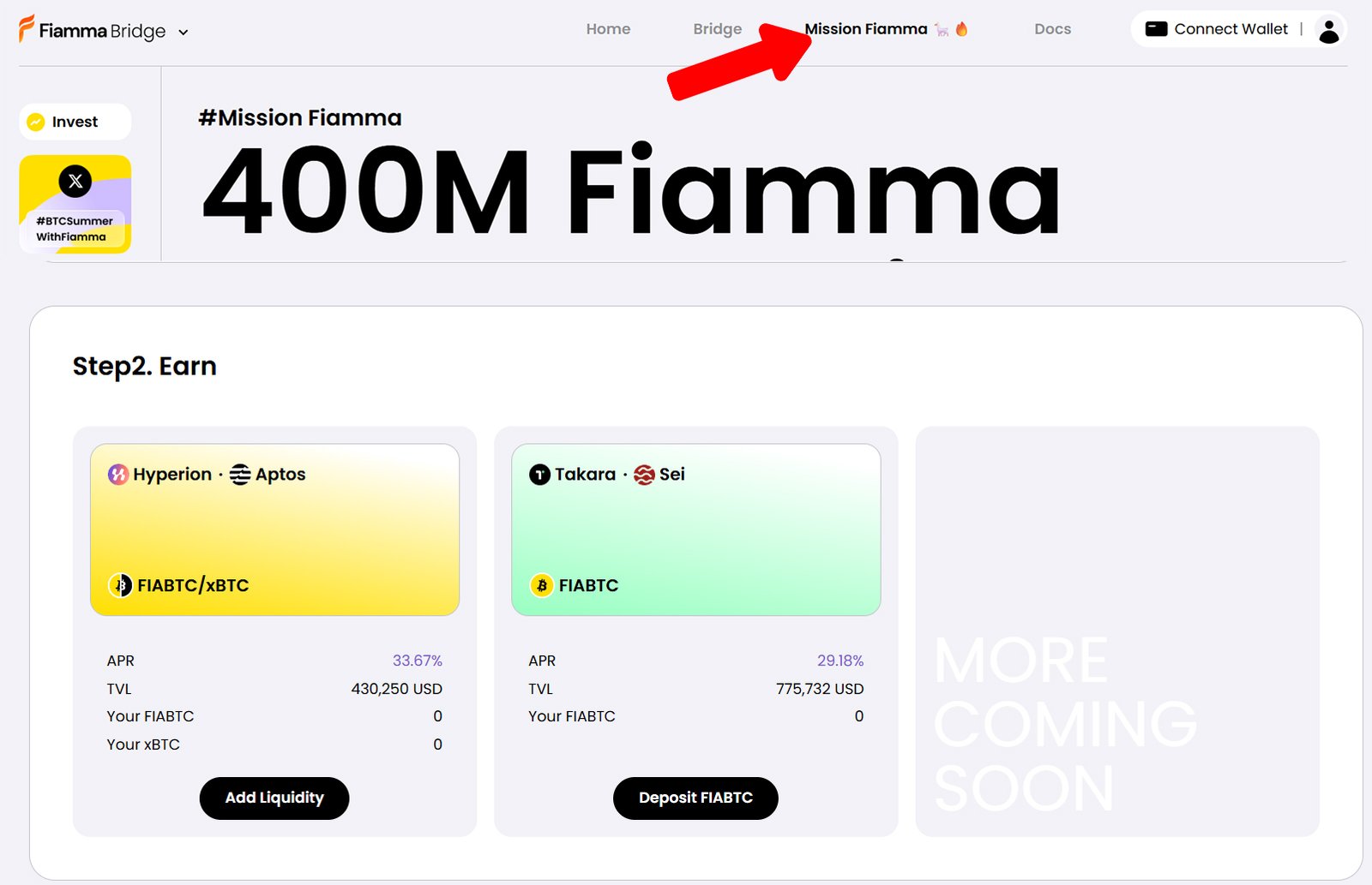 Deposit FIABTC into supported protocols to earn 0.4 points each day for every 0.00001 FIABTC.