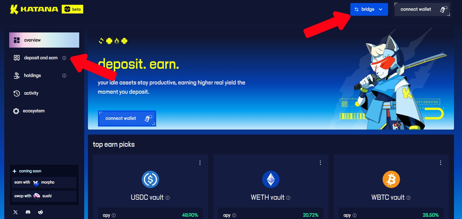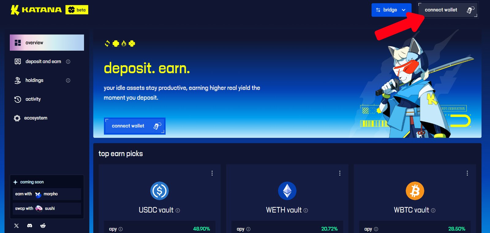 1. Visit the official Katana app and connect your wallet