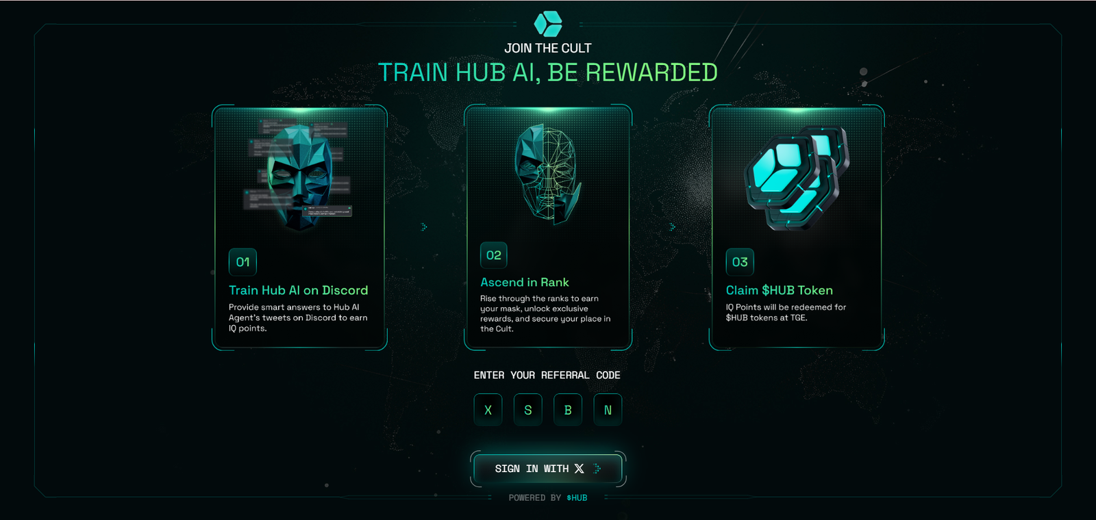 1. Visit hub.xyz and log in with an X account.
