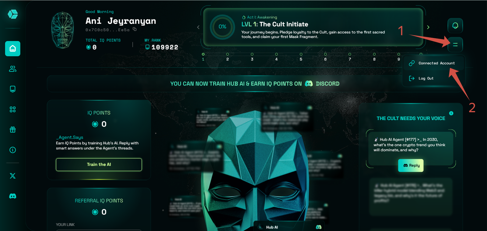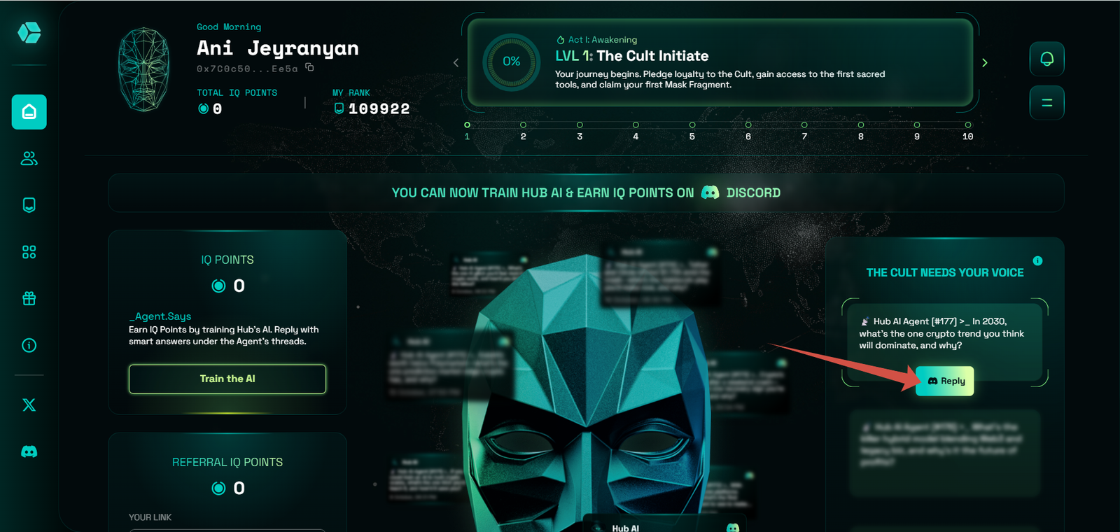 The Hub.xyz Airdrop focuses on community interaction and task-based participation. Instead of passive farming, users earn IQ points by answering AI-related questions and completing missions within the Hub Discord server. High-quality responses earn more points than short or generic answers.
