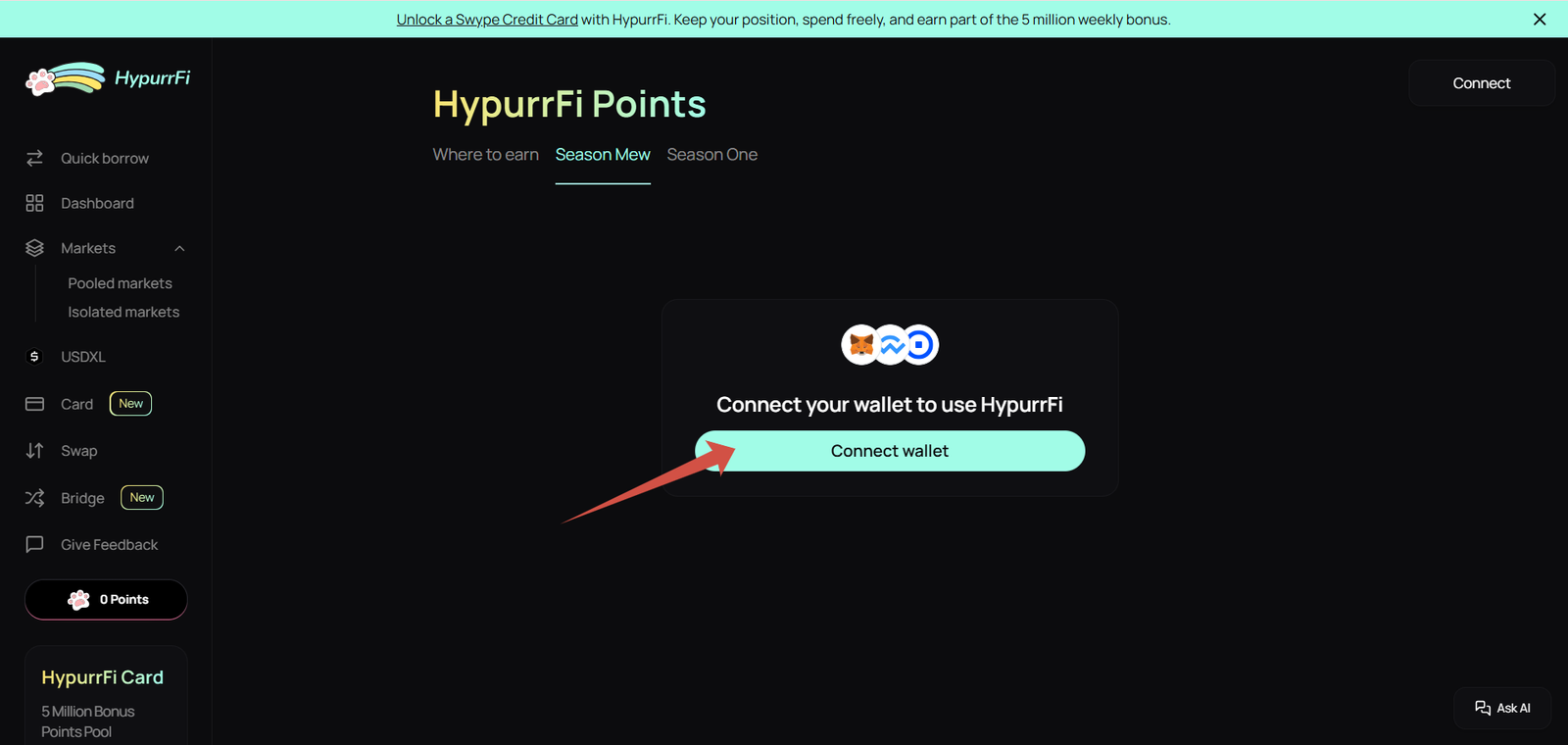 5. Deposit WHYPE, UBTC, UETH, USOL, or stables as collateral and borrow USDXL for point accumulation.