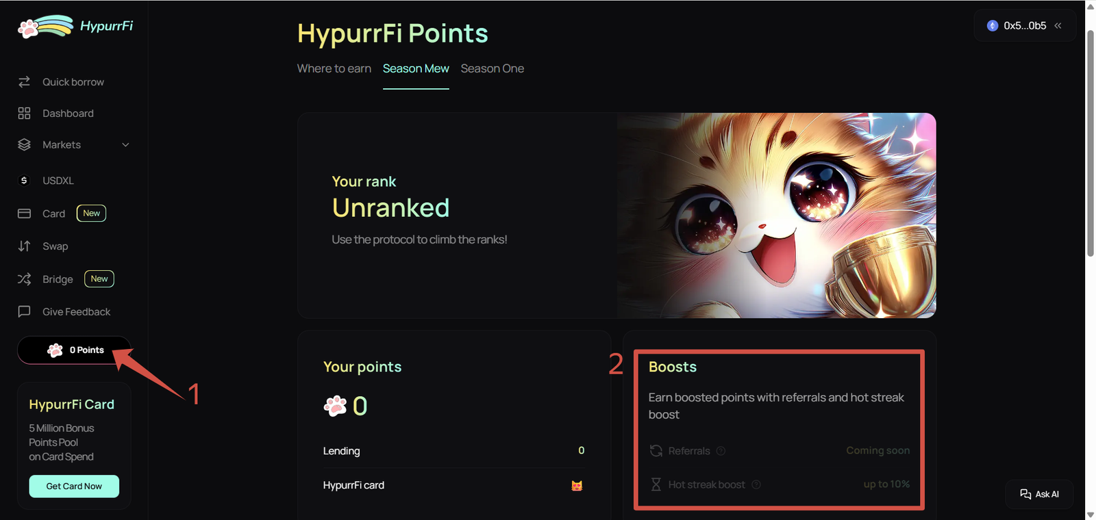 One of the highlights of this airdrop season is the rollout of the HypurrFi crypto card. Available first to the top 500 leaderboard addresses, the card allows real-world spending of crypto assets while earning additional points.