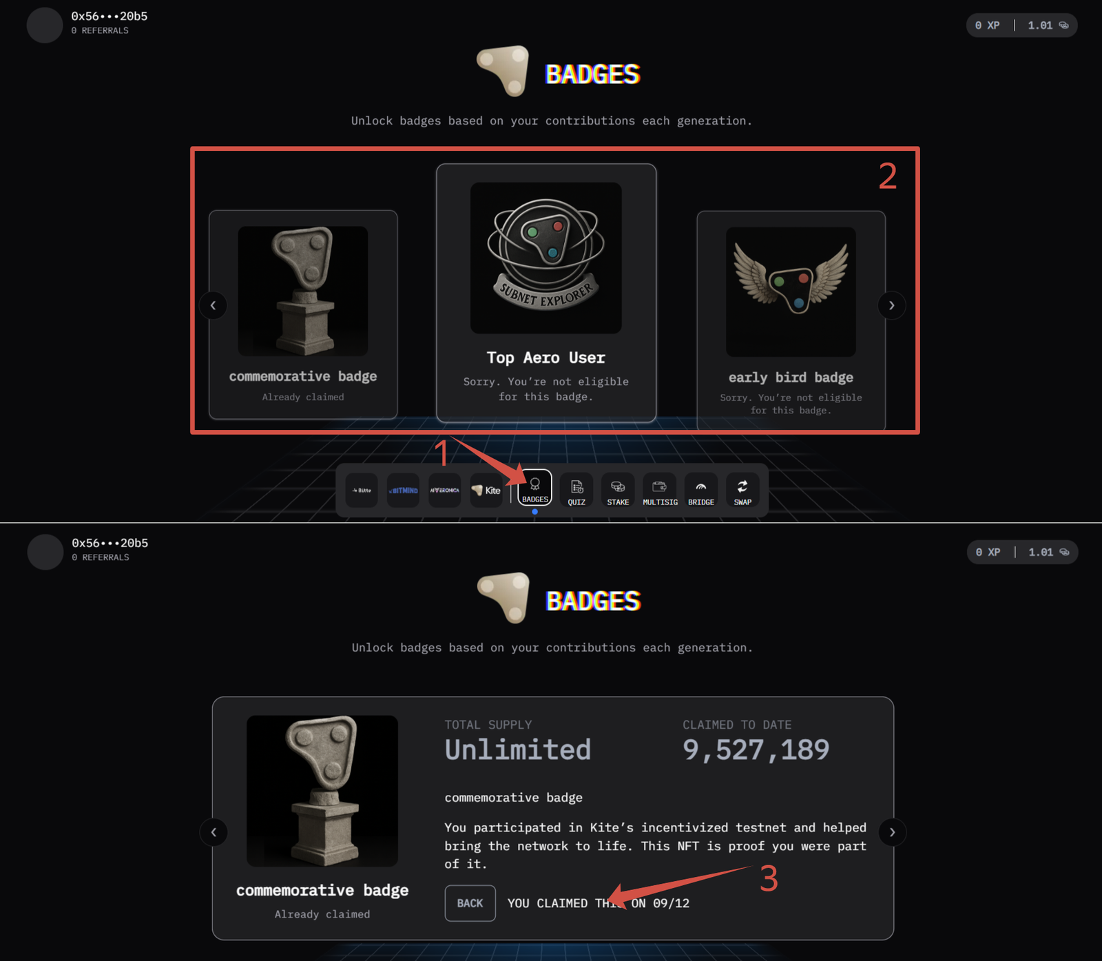 The first phase, Aero, evolved into Ozone, which introduces more activities and XP opportunities for participants. Users connect wallets, request test tokens, stake, claim badges, complete quizzes, interact with AI agents, bridge assets, and perform swaps.