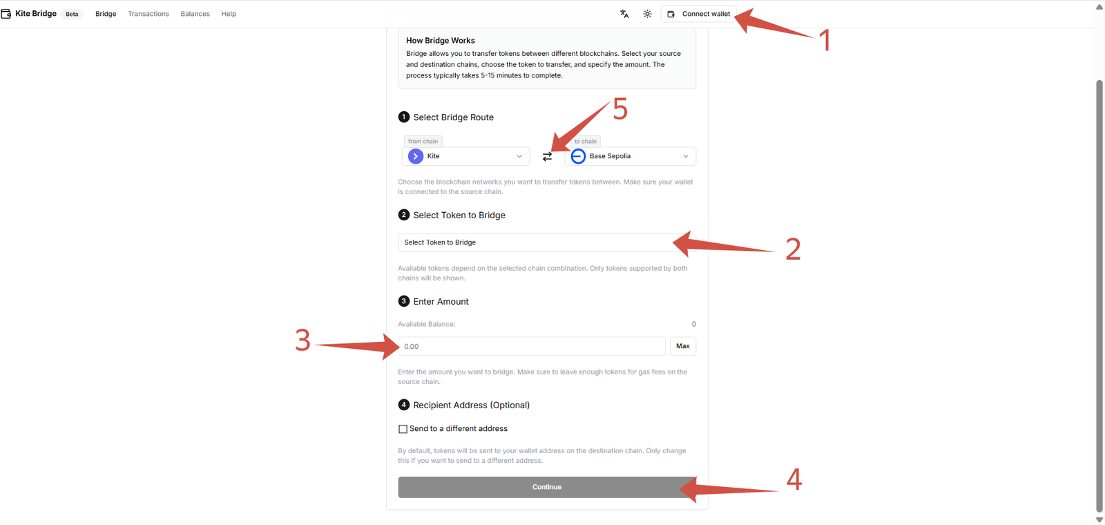 8. Bridge tokens between the Kite test network and Base Sepolia, then back. ( https://bridge.prod.gokite.ai/ )