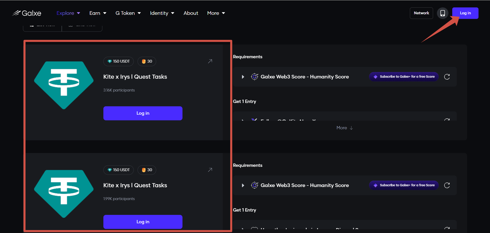 In partnership with Irys, KITE AI has launched Galxe tasks as part of the airdrop campaign. These tasks allow participants to connect wallets or social accounts, complete activities, and qualify for a $300 prize pool. Galxe expands engagement beyond the testnet and helps users earn additional points toward the airdrop.