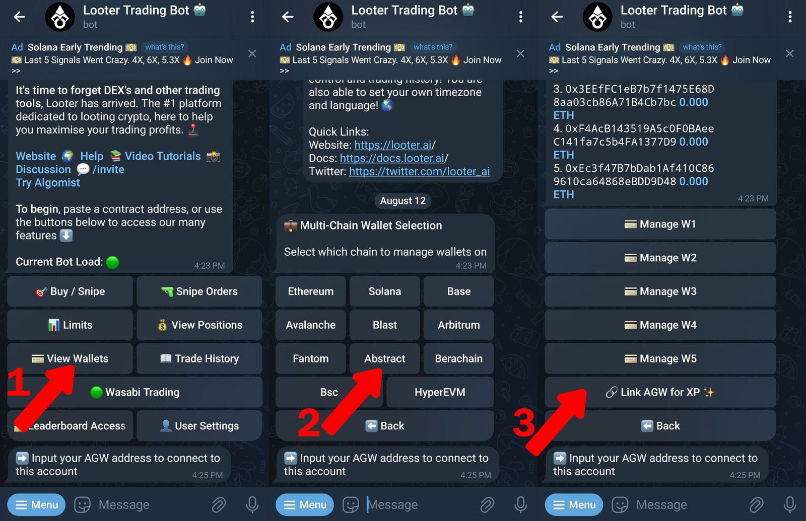Link your Abstract Global Wallet via the bot interface to start earning Abstract XP.