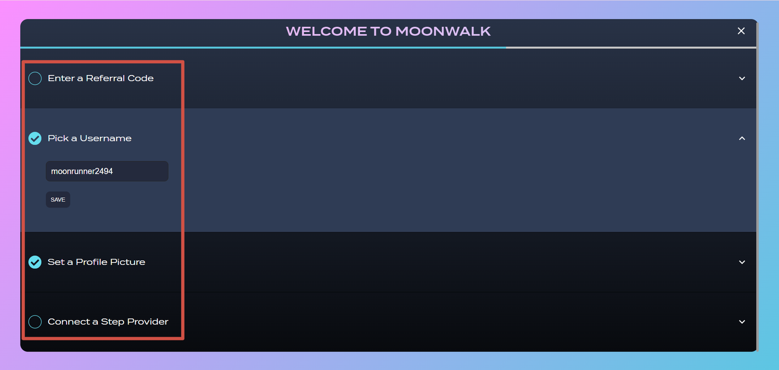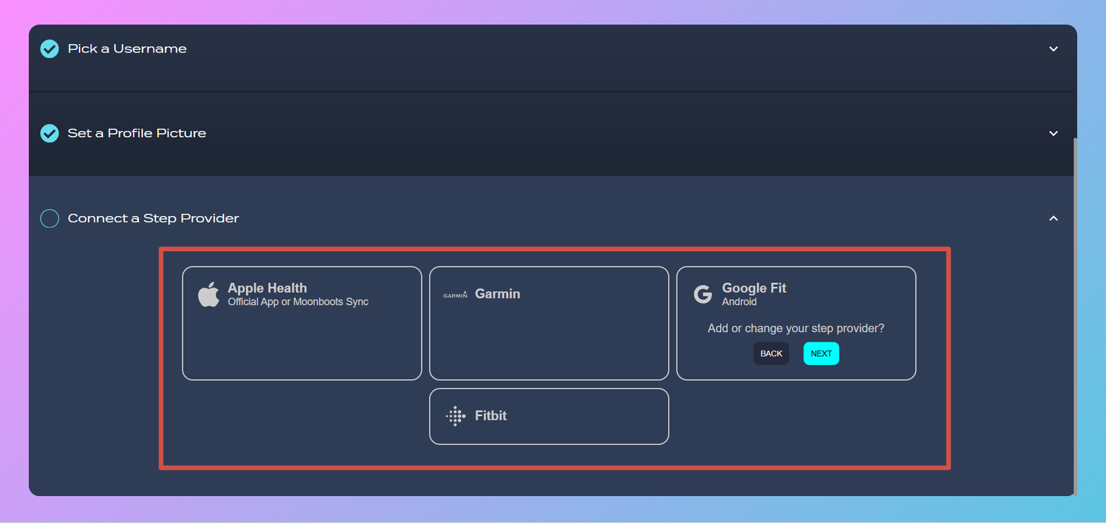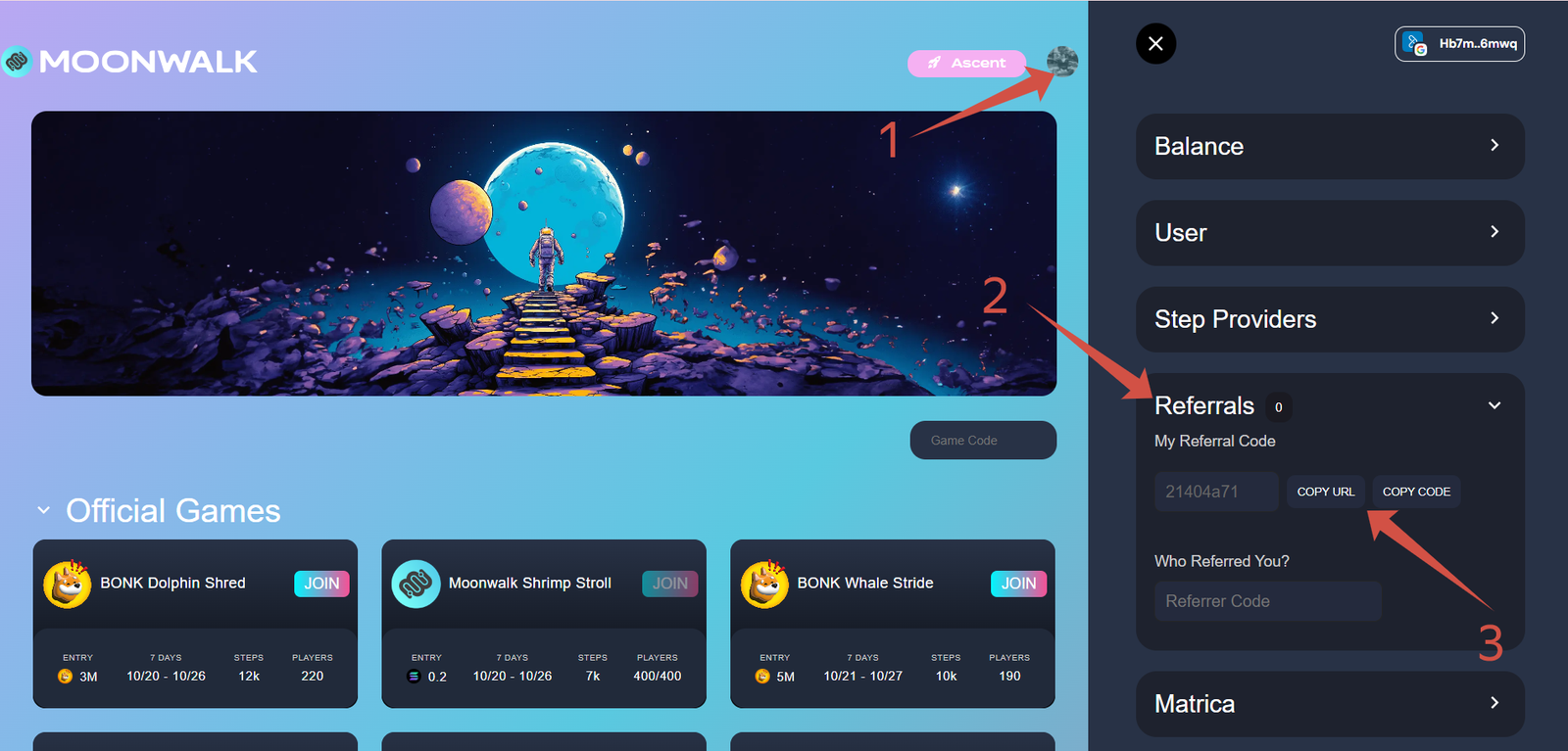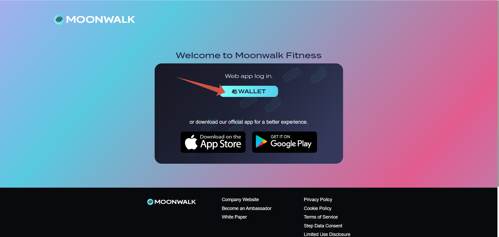 1. Visit the Moonwalk Fitness XP campaign page and connect your wallet or Google account