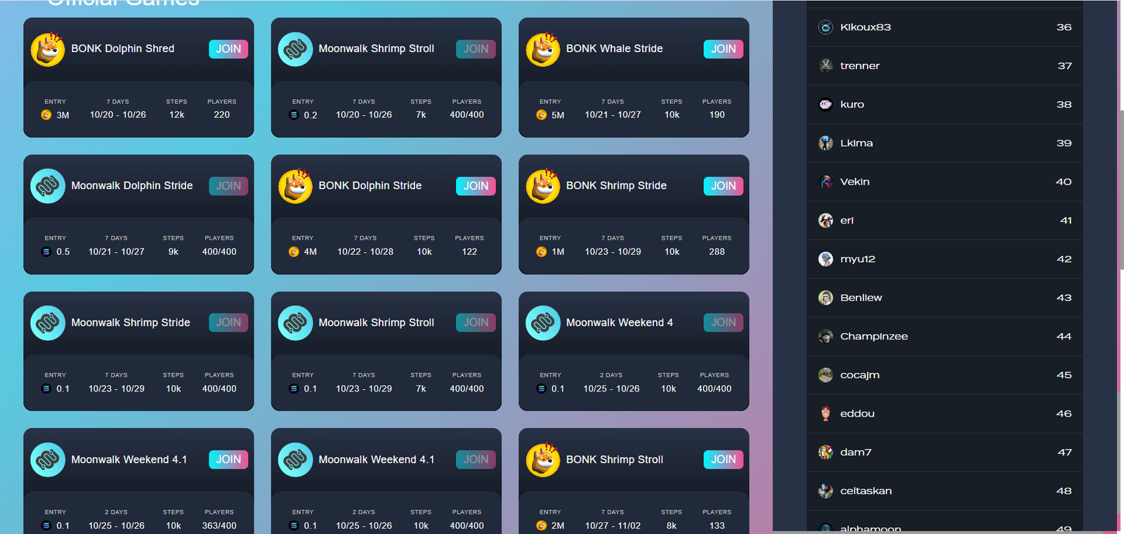 With Season 1 reward games live, Moonwalk is moving into full competition mode. Returning users can expect bonus rewards, XP boosts, and ongoing distribution from the remaining 36.9% community allocation.