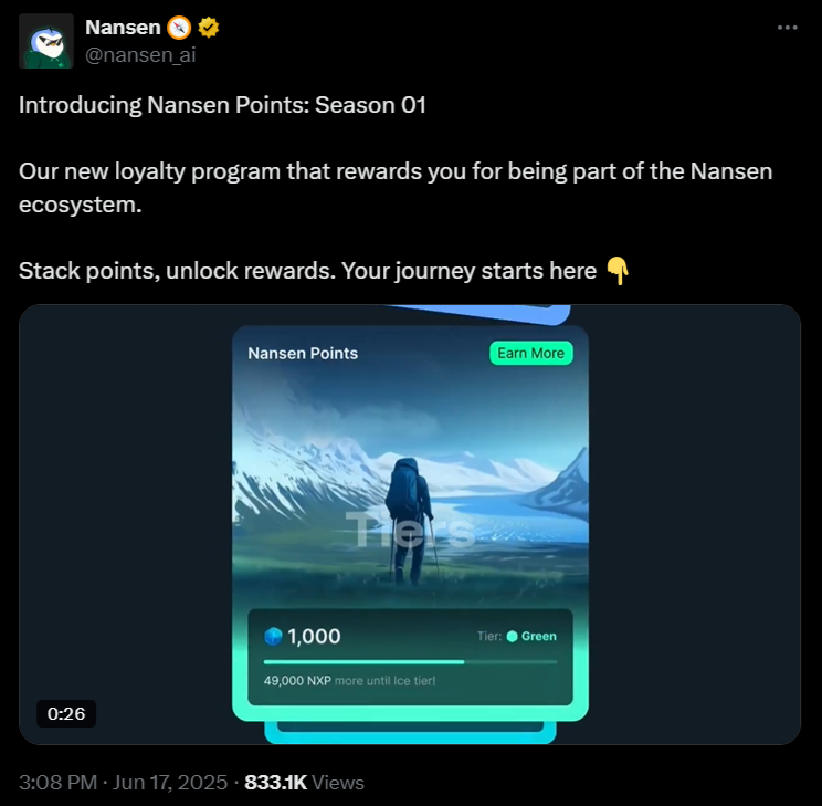 Collecting NXP is central to the Nansen Airdrop. Points are awarded through subscriptions, onboarding, staking, and referrals.