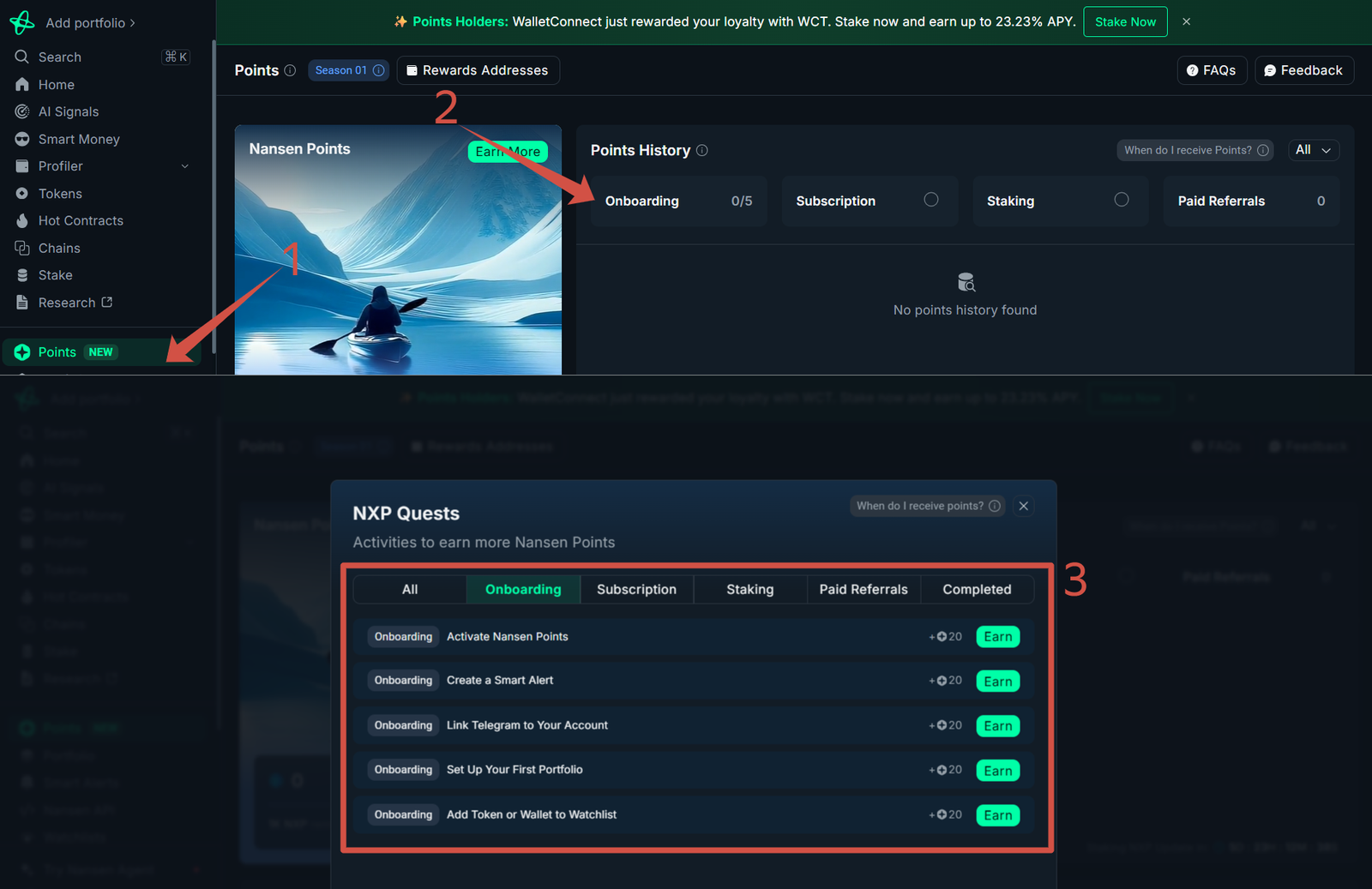 2. Complete onboarding tasks and earn 20 NXP for each action, such as activating Nansen Points, setting up a smart alert or …