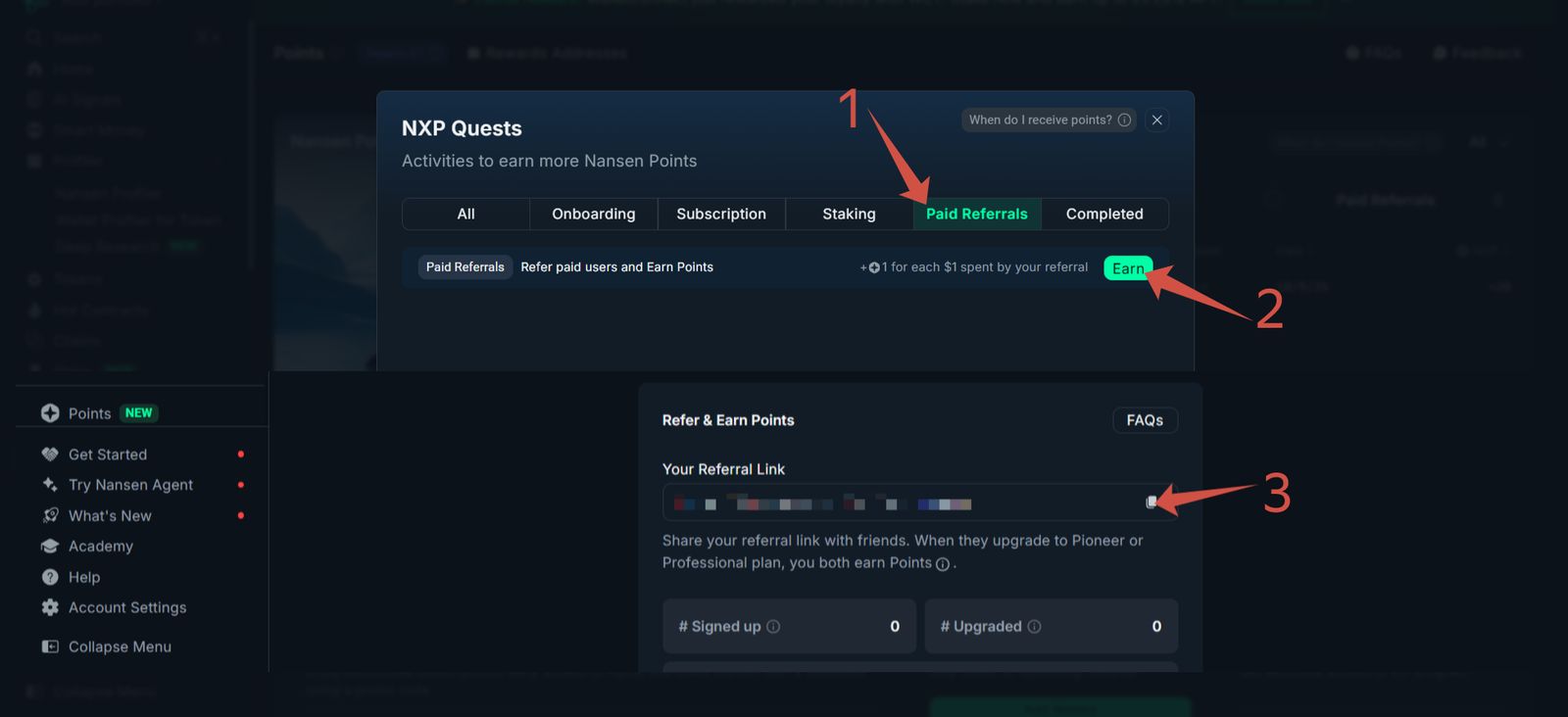 4. Share your referral link and earn one NXP for every dollar your referral spends on subscriptions.