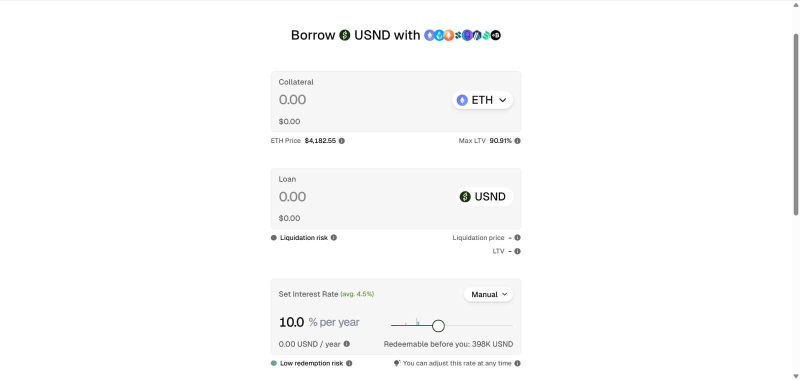 2. Mint USND by depositing ETH, LSTs, or ARB at your chosen interest rate.