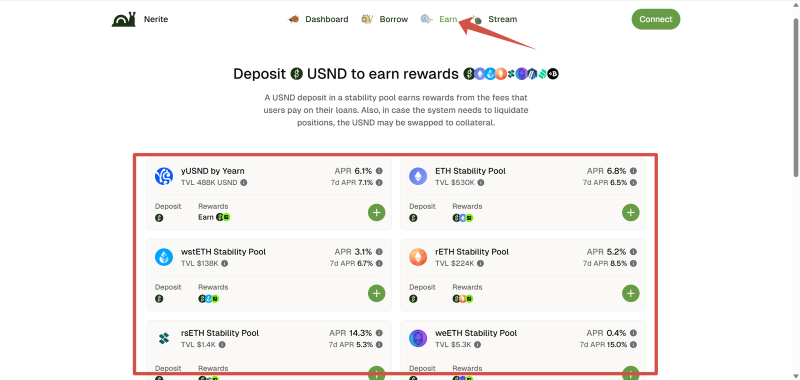 3. Deposit USND into Stability Pools to boost rewards.