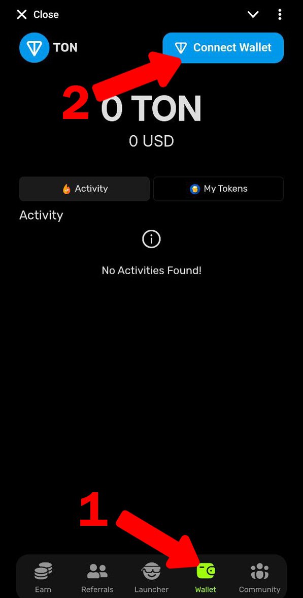 Head to the Wallet section and connect your TON-compatible Telegram wallet