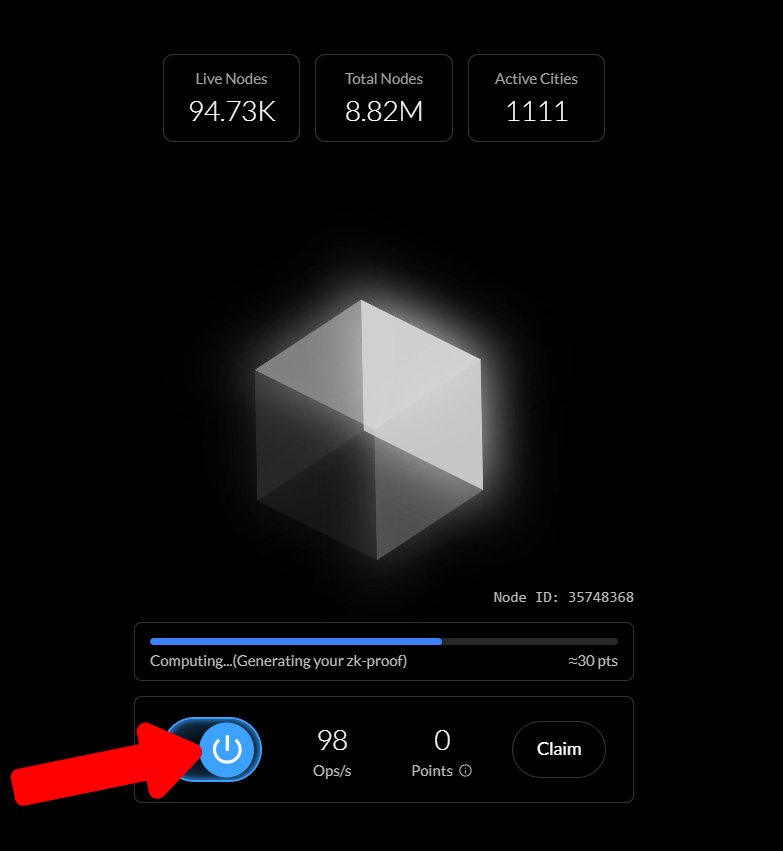 2. Click the toggle switch to start farming points. Keep the browser tab open for continuous earning.