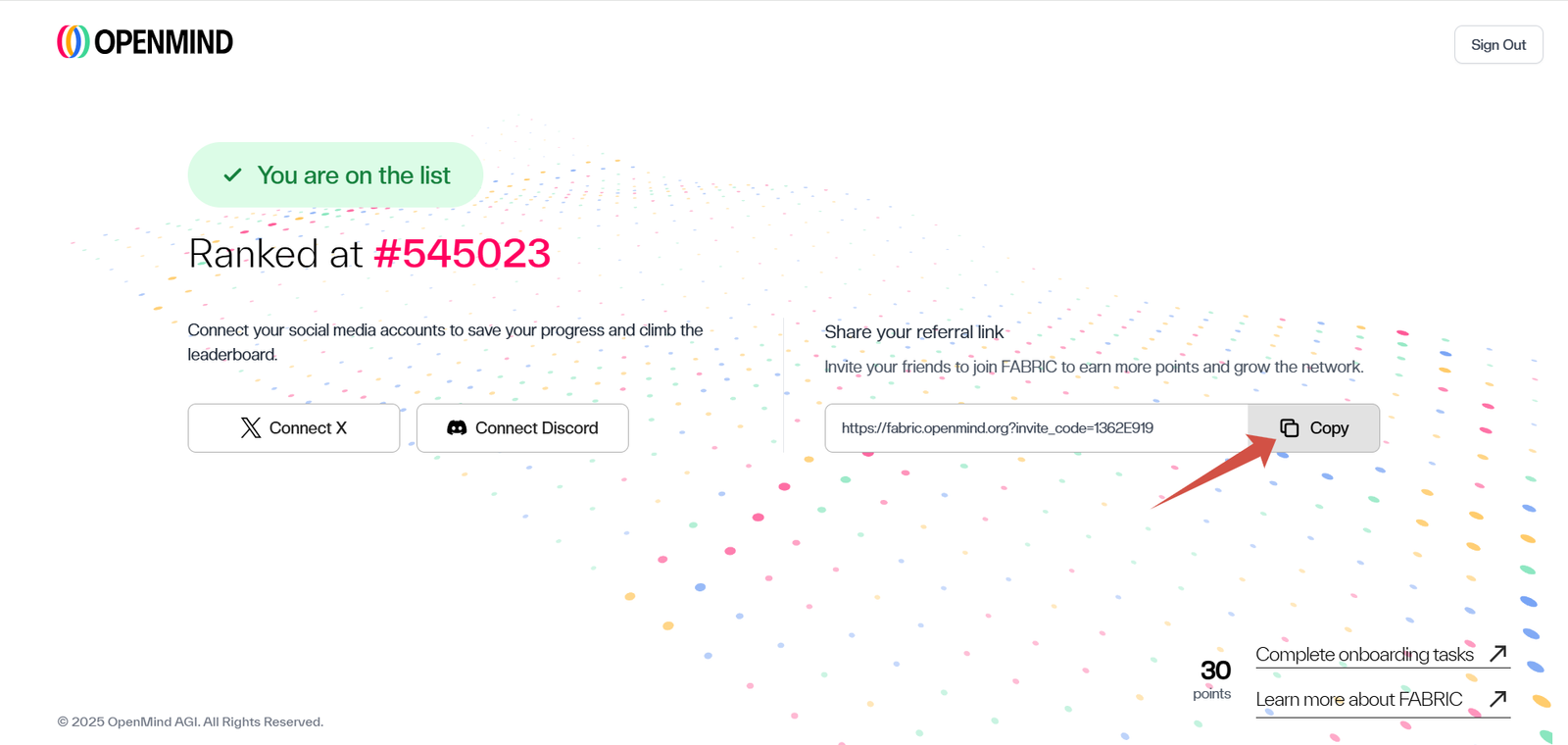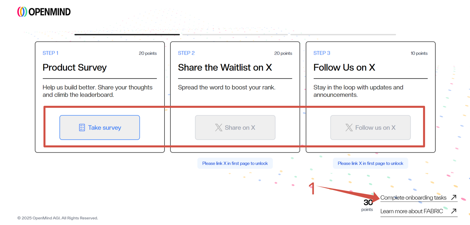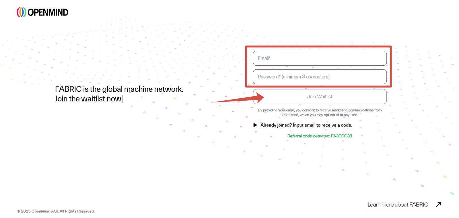 The OpenMind airdrop refers to the FABRIC waitlist program, which uses a points system. Participants can earn points that may unlock future rewards or early access, although the company has not confirmed a token drop.