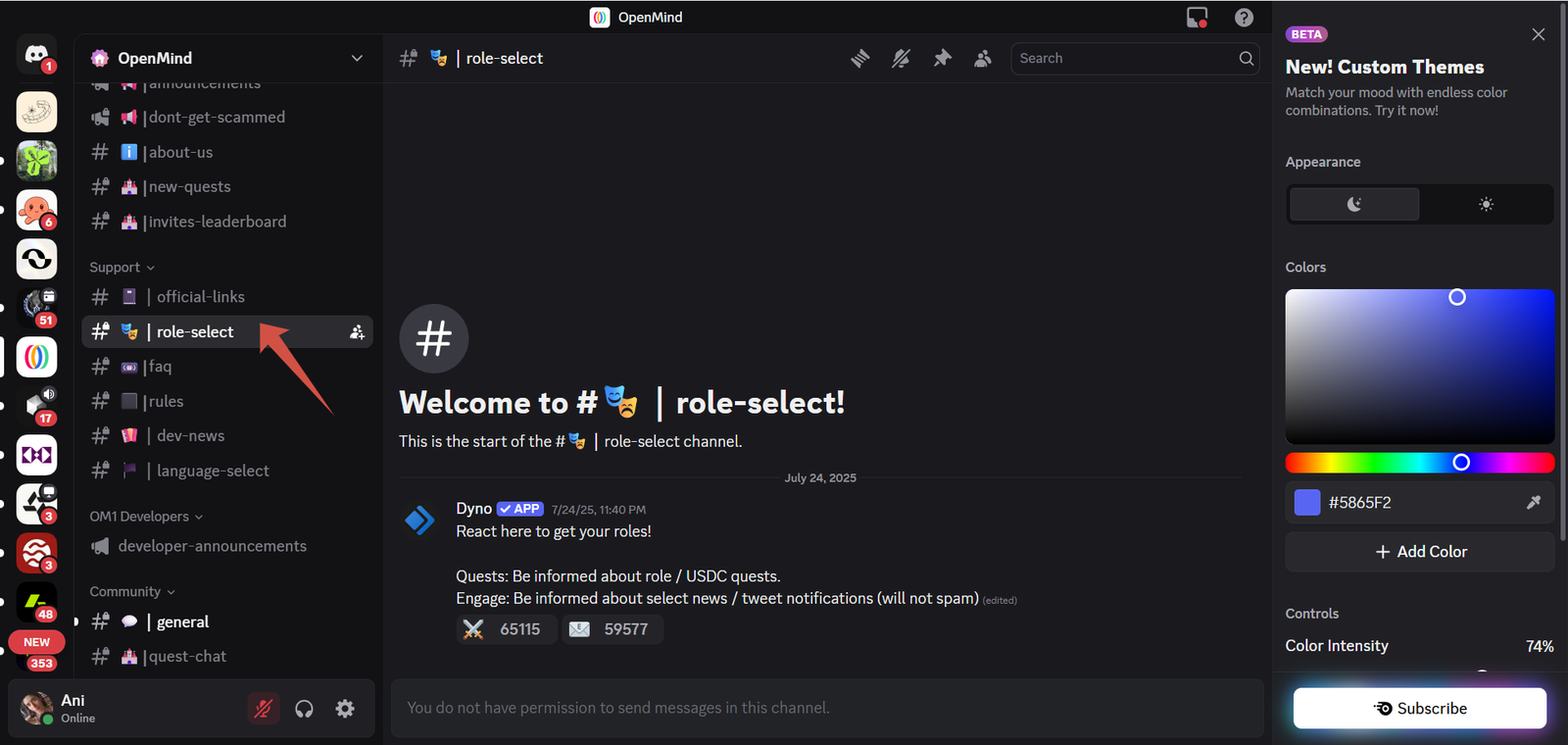 Claim the @Quests role in role-select to receive future quest updates. Invites from the @OpenMind Team will not count toward rewards.