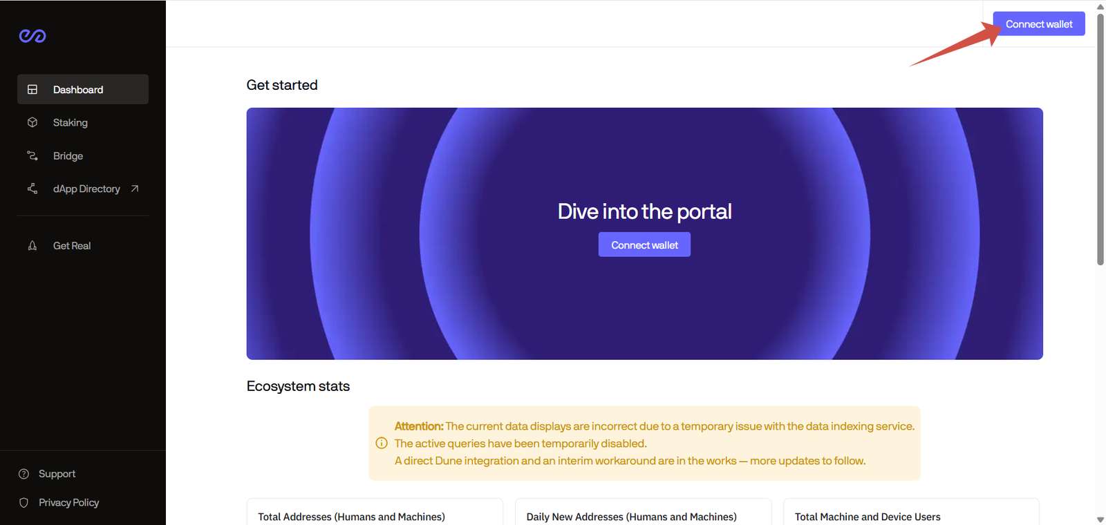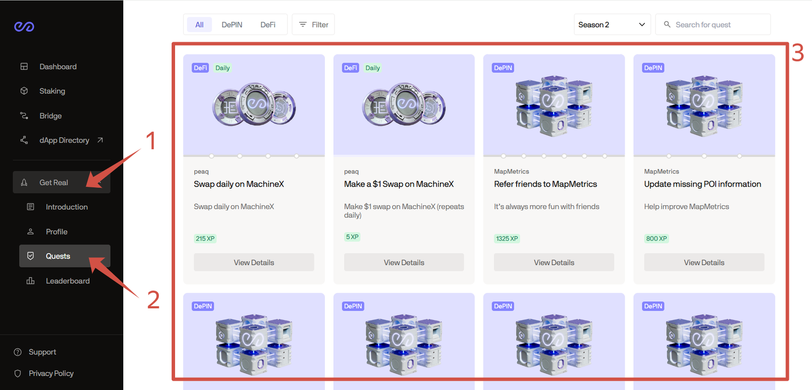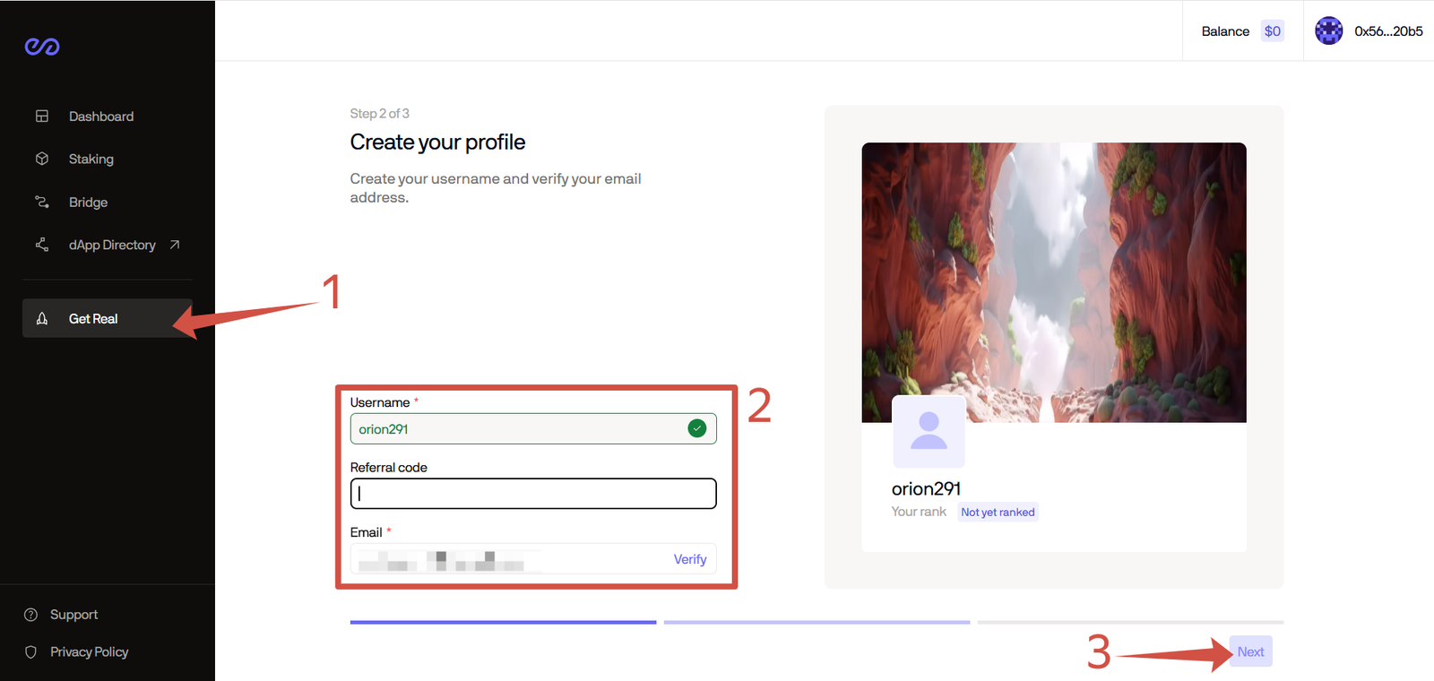 2. Go to the official portal for Get Real Season 2 and link a supported wallet to start.