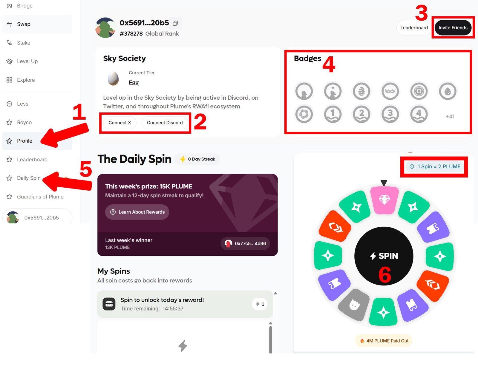 5. Link social accounts, collect referral badges and spin wheel for extra bonuses.