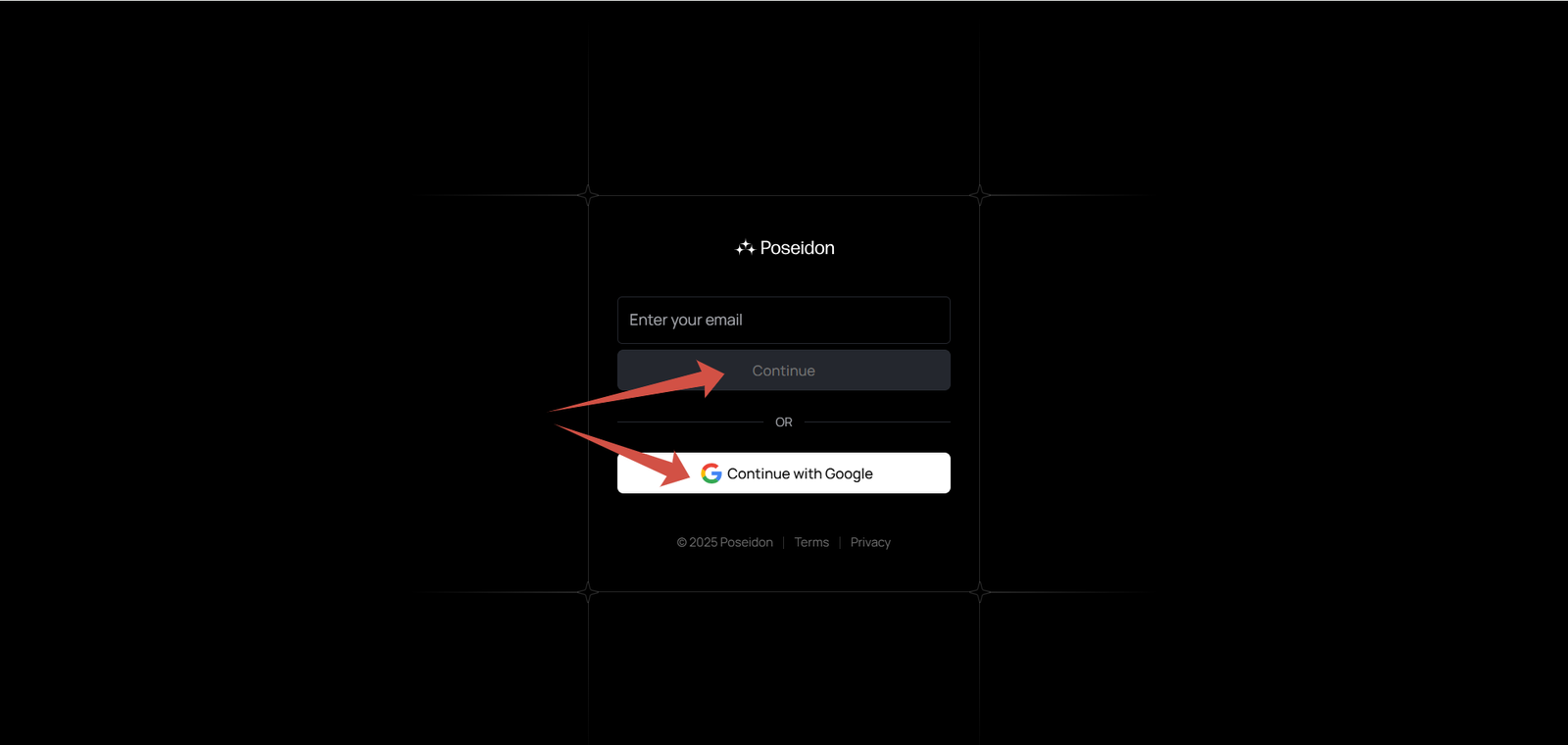 1. Create an account using Google login or email on the Poseidon AI platform.