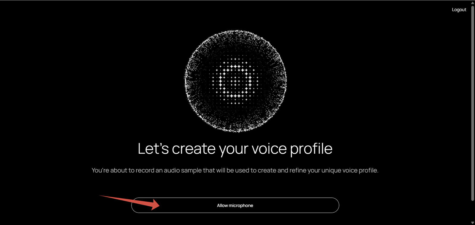 2. Set up your profile by recording a short starter script after granting microphone access.