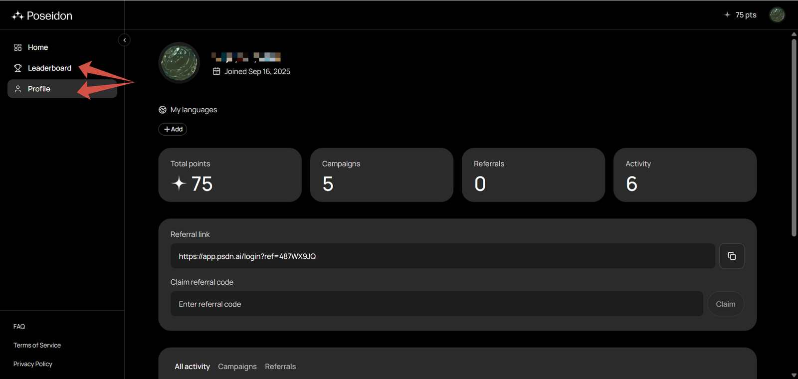 5. Track your progress on the leaderboard and invite new users to boost your point total.