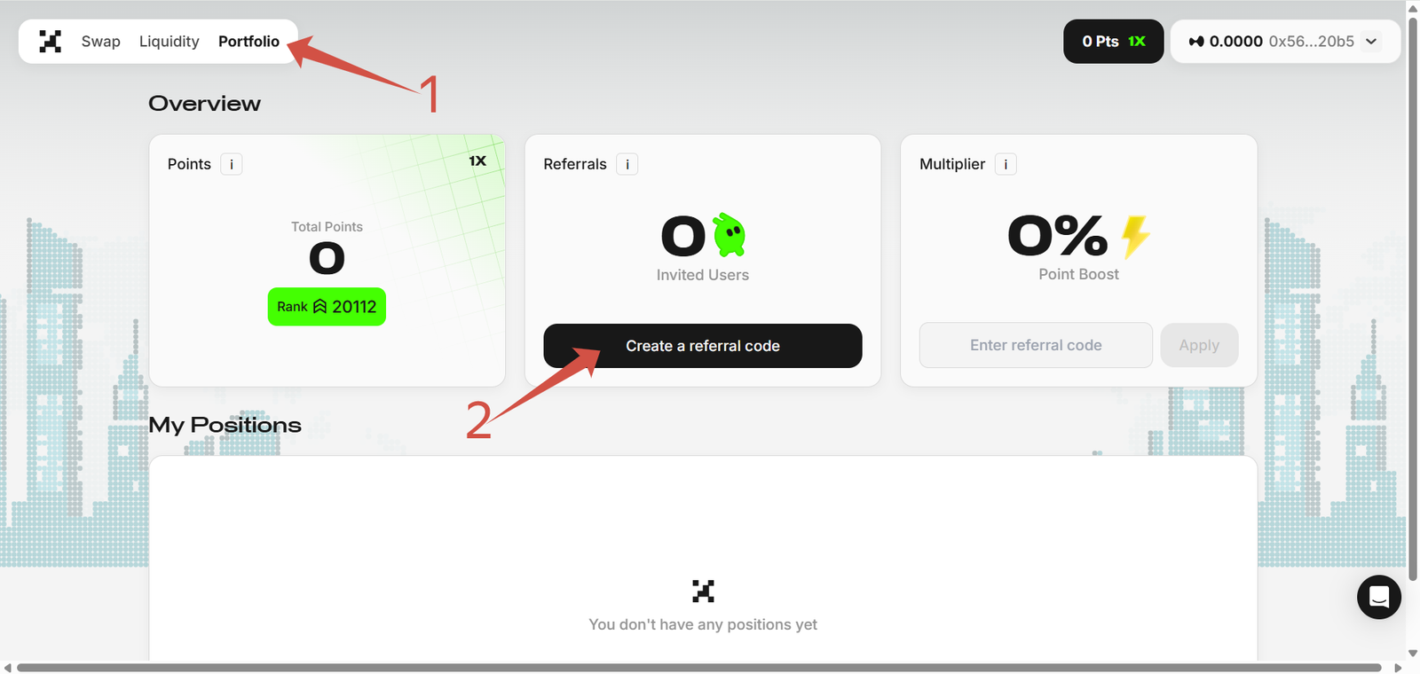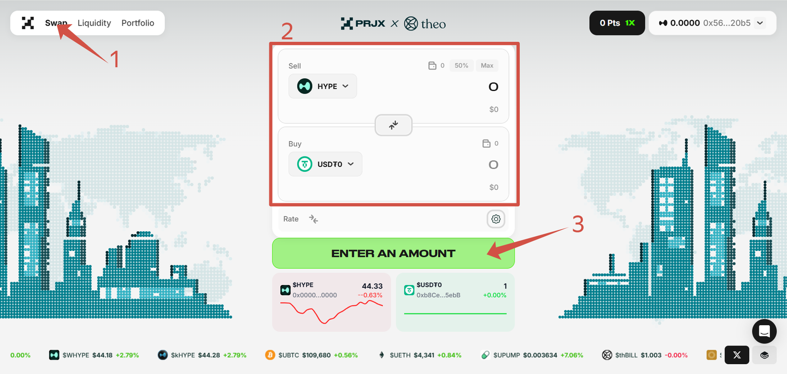3. Make Swaps: Open the Swap tab, enter the amount you want to exchange, and complete transactions to generate points.