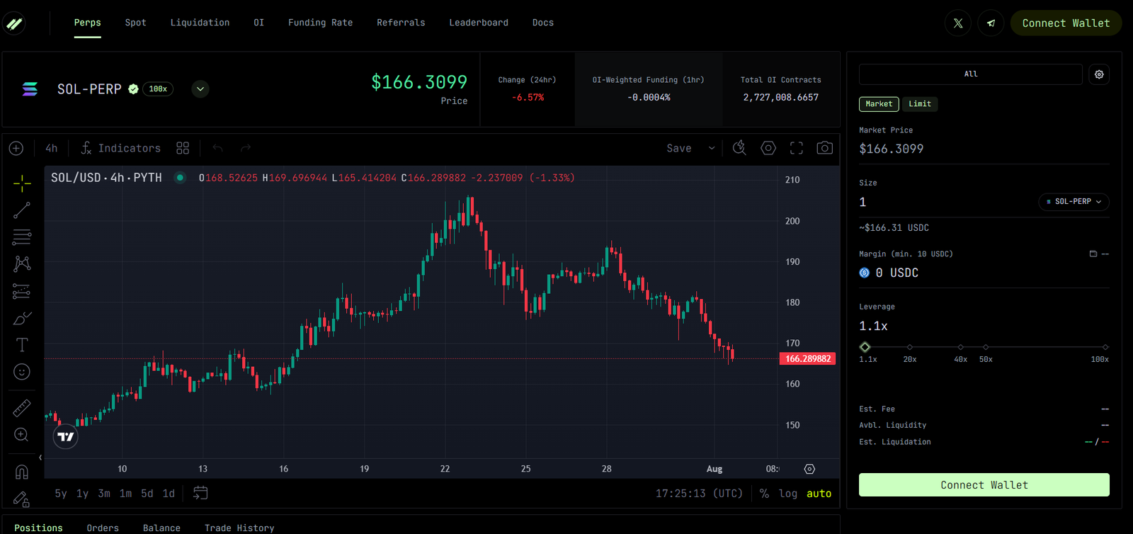 Currently, the platform integrates with Jupiter and FlashTrade. It plans to add Drift and Zeta soon, expanding liquidity options even further.