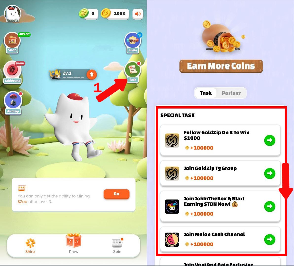 Here, you can complete various missions such as social follows, retweets, or wallet interactions. -