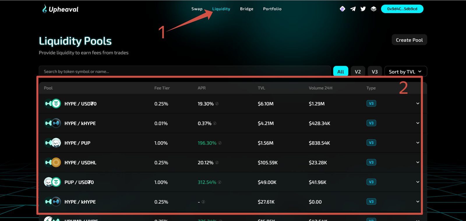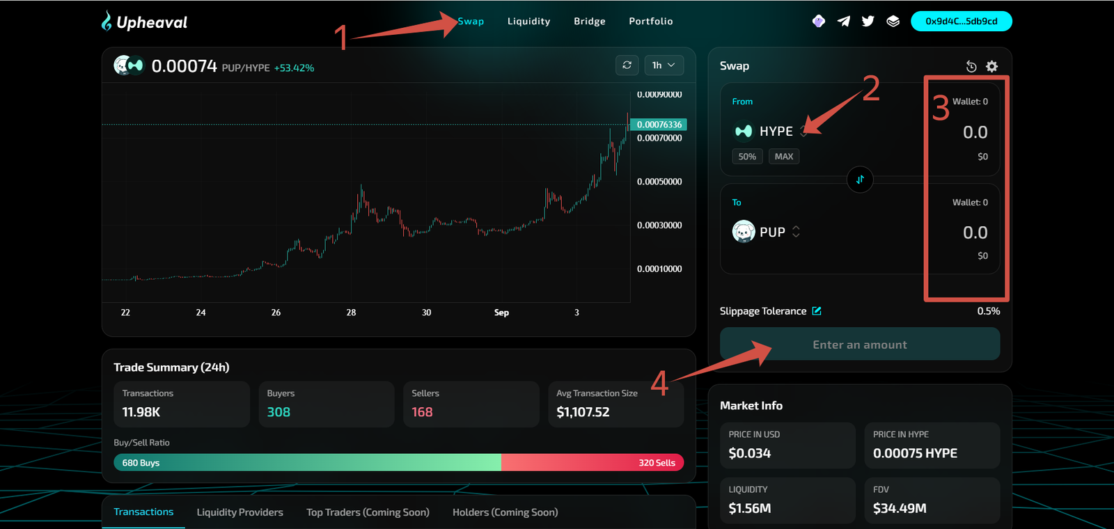 Upheaval is a DeFi platform built on HyperliquidEVM, offering token swaps and liquidity pools with optimized rates and low fees. Users can participate in token swaps, provide liquidity, and hold $PUP in spot positions to earn $UP Points.