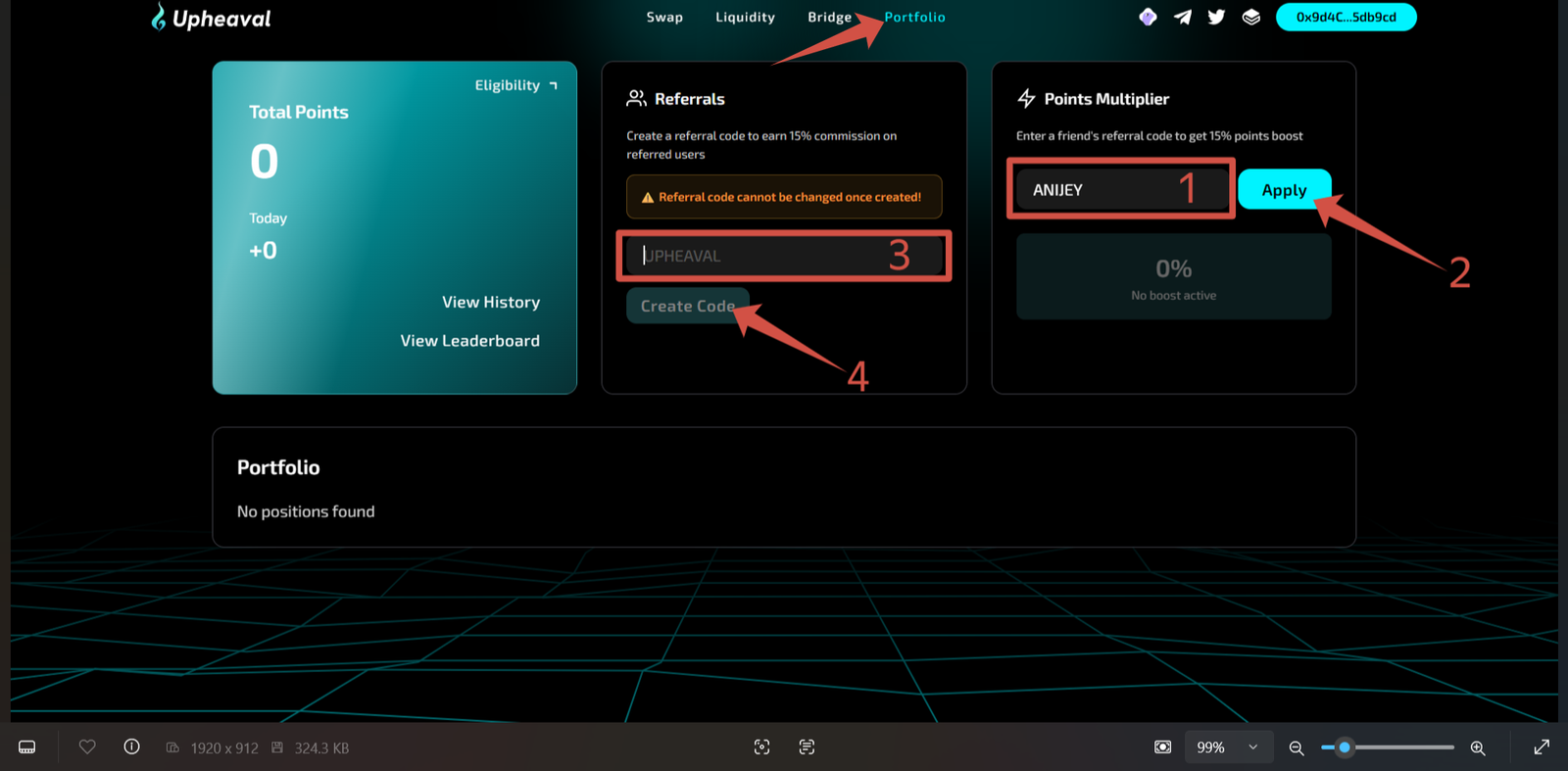 A referral system boosts rewards by 15% for both the inviter and the invitee. Upheaval also provides a portal where participants track their points and referrals in real time. The program will remain short-term and close before the $UP token release.