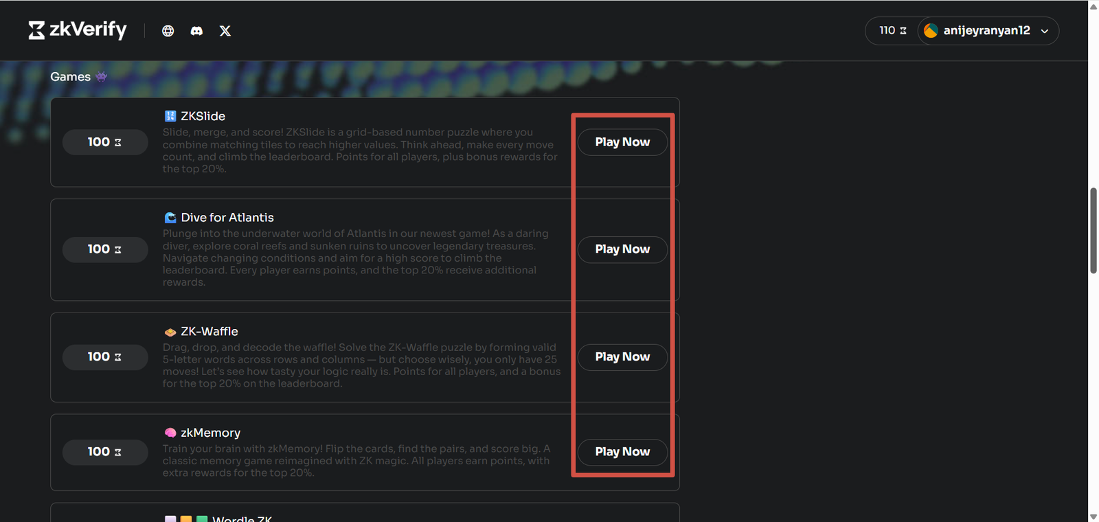 The project rewards users with points for completing tasks and challenges. More complex tasks give higher points, which improve eligibility for ZKV distribution.