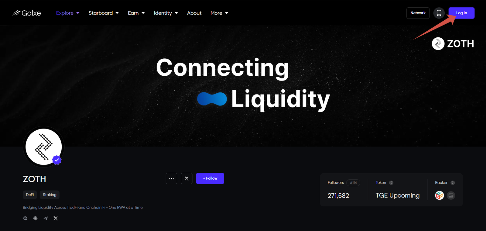 1. Visit the Zoth website and connect your wallet. If you used the platform before, connect with the same wallet.