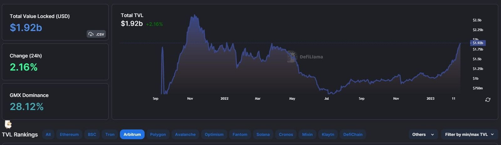 YEREVAN (CoinChapter.com) – Ethereum scaling solution Arbitrum’s total value locked (TVL) exploded 86% year-to-date, pushed March 2022 highs, and stood at $1.92 billion on Feb 23. The layer-2’s dominance grew as the number of unique addresses on Arbitrum reached an all-time high.